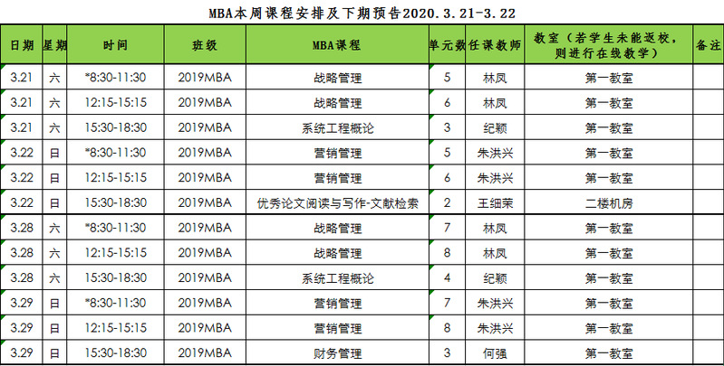 MBA本周课程安排及下期预告2020.3.21-3.22