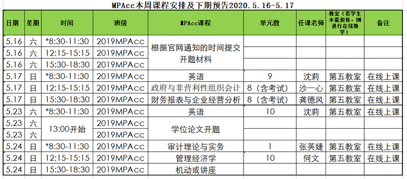 MPacc本周课程安排及下期预告2020.5.16-5.17