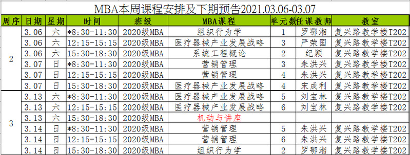MBA本周课程安排及下期预告2021.03.06-03.07