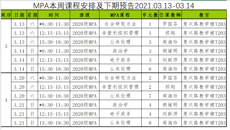 MPA本周课程安排及下期预告2021.03.13-03.14