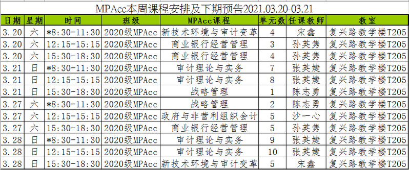 MPAcc本周课程安排及下期预告2021.03.20-03.21