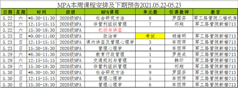 MPA本周课程安排及下期预告2021.05.22-05.23