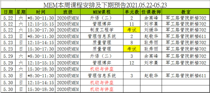 MEM本周课程安排及下期预告2021.05.22-05.23