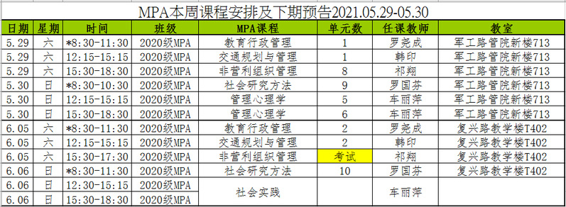MPA本周课程安排及下期预告2021.05.29-05.30
