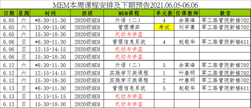 MEM本周课程安排及下期预告2021.06.05-06.06