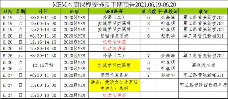 MEM本周课程安排及下期预告2021.06.19-06.20