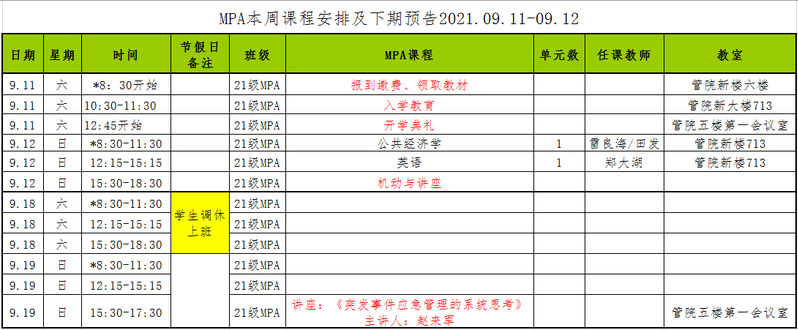 MPA本周课程安排及下期预告2021.09.11-09.12