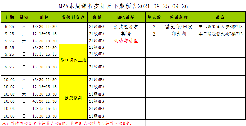 MPA本周课程安排及下期预告2021.09.25-09.26