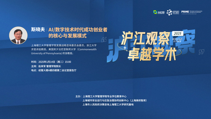 沪江观察“卓越学术”管理实务类课程预告|Al/数字技术时代成功创业者的核心要素与发展模式