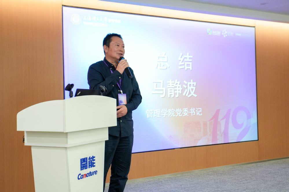马静波在总结讲话中指出,要透过“智能生产”的效率看到背后的“管理智慧”,理解从“工业效率”到“美好生活”的价值提升路径,更要激发校友网络的“持续共创”潜能,将校友力量转化为推动可持续发展的现实动力,共同为社会发展贡献“上理管院人”的智慧与力量。