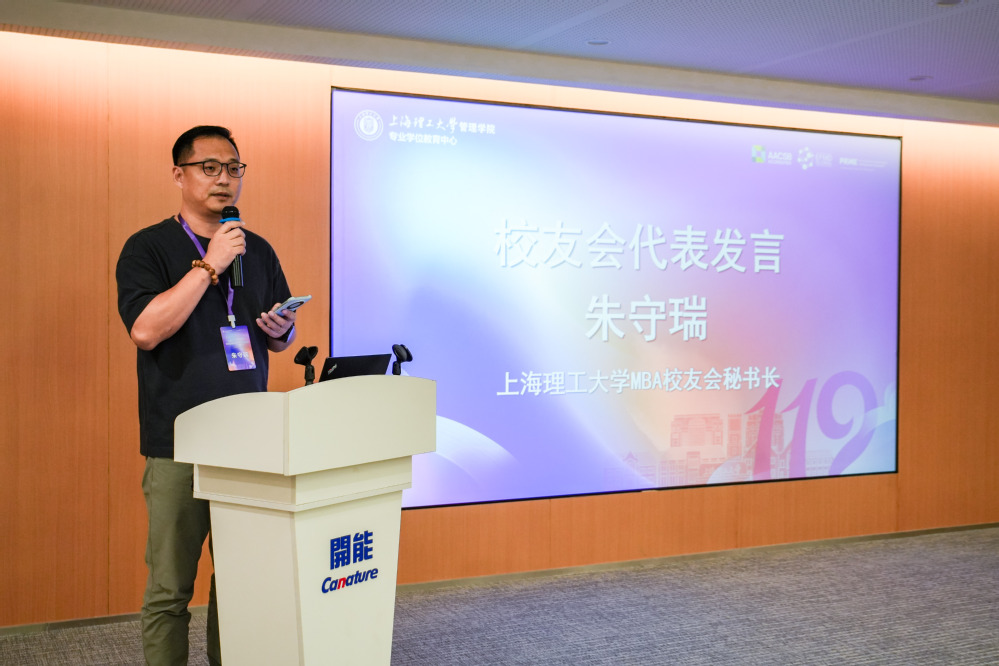 三位来自不同领域的校友代表结合各自行业实践,从多个层面诠释了“全链条创新”的内涵。MBA校友会秘书长、上海隆源实业有限公司总经理朱守瑞从企业管理角度出发,强调智能化转型须“软硬兼施”,以管理创新激活技术效能。MPA校友会会长、上海金虹帆文化传媒有限公司总经理刘新立将视角延伸至更广泛的社会生态,提出应构建政府、企业、社会共创的“雨林式”生态,管理者应成为连接各方的催化剂。MEM杰出校友代表、人民浩满电子科技有限公司总经理朱福超则基于系统思维,探讨了如何将前沿技术转化为稳定可靠的产业解决方案。