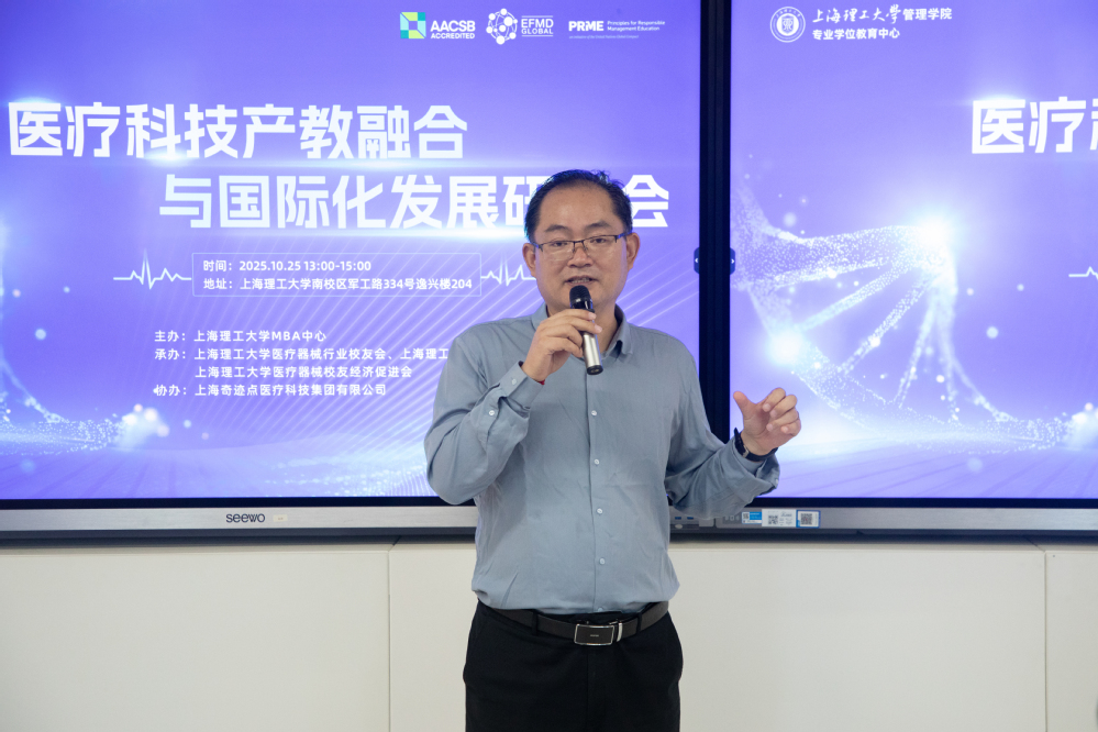 10月25日,适逢上海理工大学建校119周年校庆,医疗科技产教融合与国际化发展研讨会在军工路校区举行。本次活动吸引了来自学术界与产业界的多位专家学者与企业代表,围绕医疗科技的前沿趋势与创新发展展开深入交流。管理学院院长赵来军、专业学位教育中心综合办公室主任孟陈莉等出席研讨会。活动由上海理工大学医疗器械行业校友会会长、第三届MBA校友会会长踪家武主持。