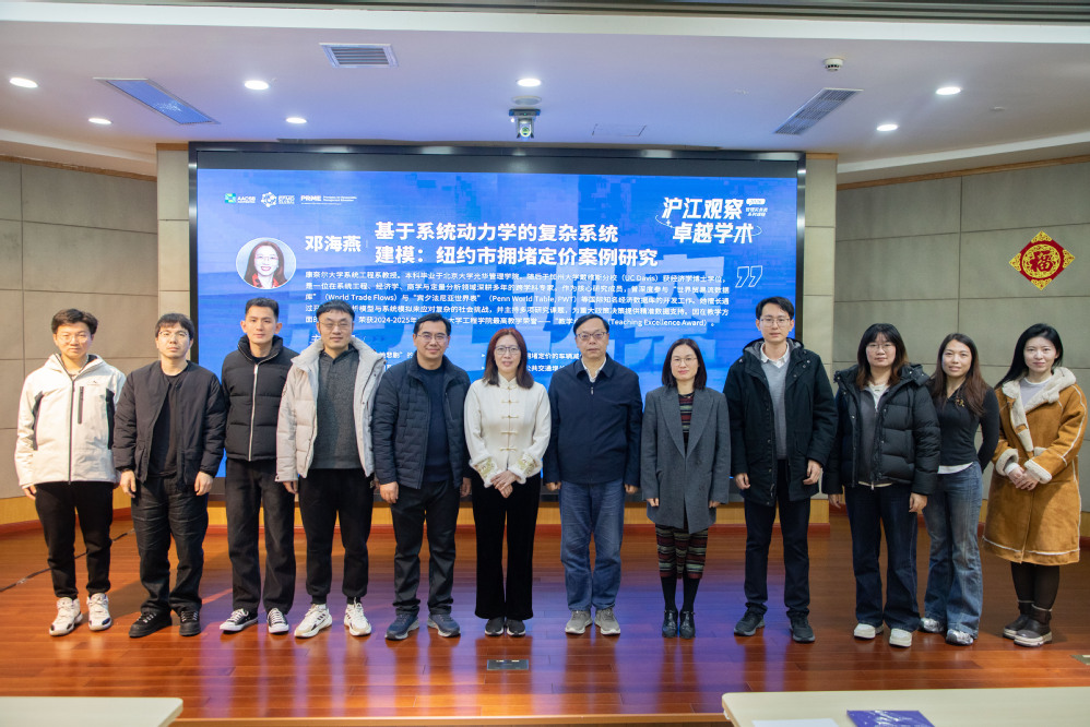 1月8日,“沪江观察”管理实务类课程在军工路校区举行。美国康奈尔大学系统工程系教授邓海燕受邀作题为“基于系统动力学的复杂系统建模:纽约市拥堵定价案例研究”的专题分享。管理学院院长、专业学位教育中心主任赵来军及学院相关师生参加活动。讲座由管理学院副院长刘魏巍主持。