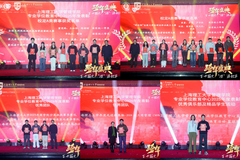 盛典现场对上理管院专业学位教育中心年度优秀团队、个人及校定A类赛事获奖者进行了表彰,并举行了上海理工大学沙15、新11启动仪式,面向中心所有专业学生进行第十五届商学院沙漠挑战赛和第十一届商学院新疆挑战赛的参赛招募。