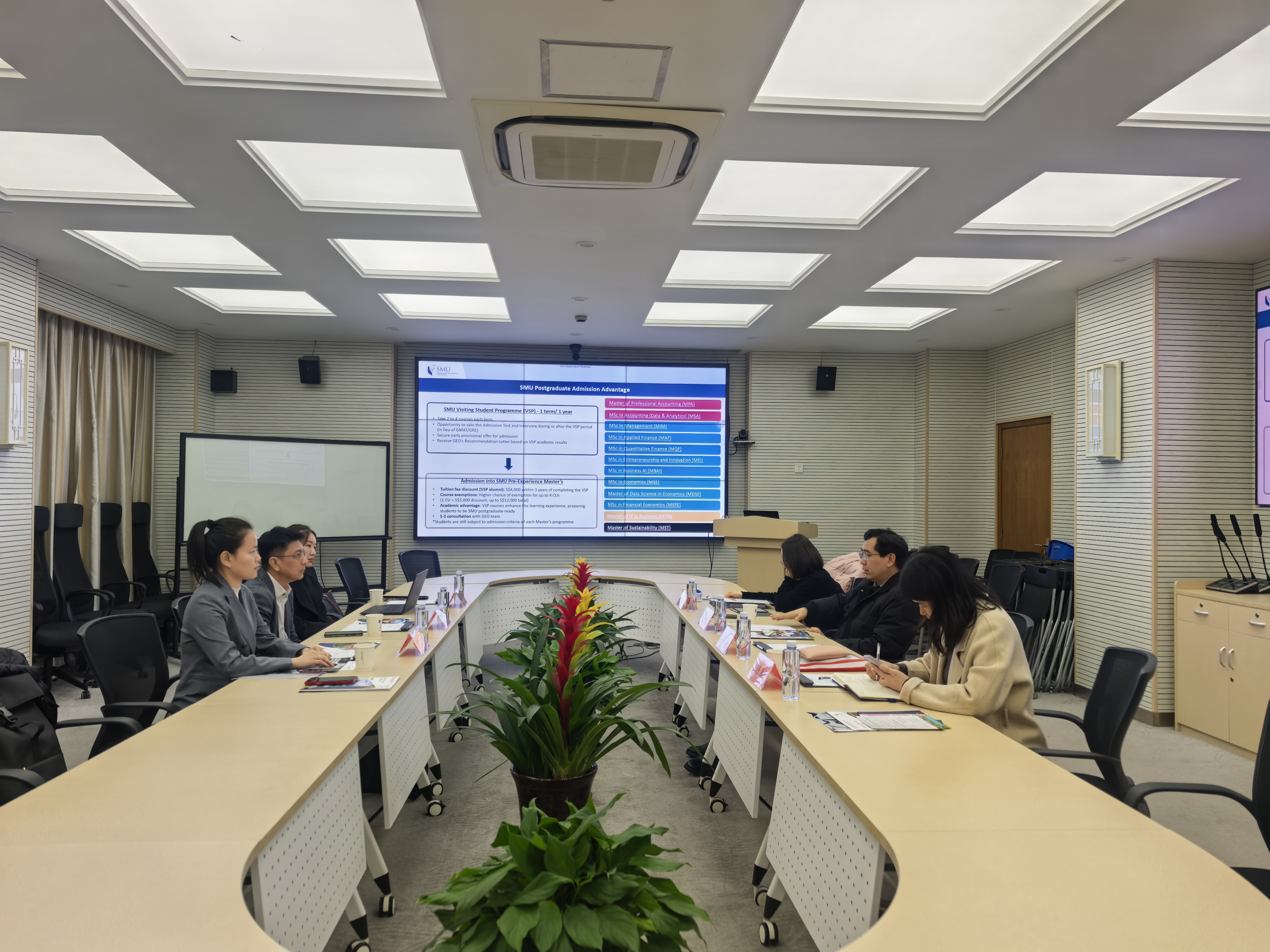 3月9日下午,新加坡管理大学国际教育中心主任郑伟华、项目专员林妤,上海世淇教育科技有限公司总经理付攀一行到访管理学院。管理学院副院长刘魏巍,国际化办公室主任谢伟等共同参加会谈。会议由刘魏巍主持。