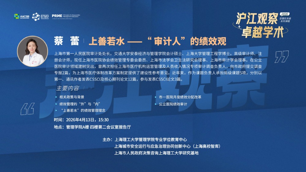 沪江观察“卓越学术”管理实务类课程预告|上善若水 —— “审计人”的绩效观