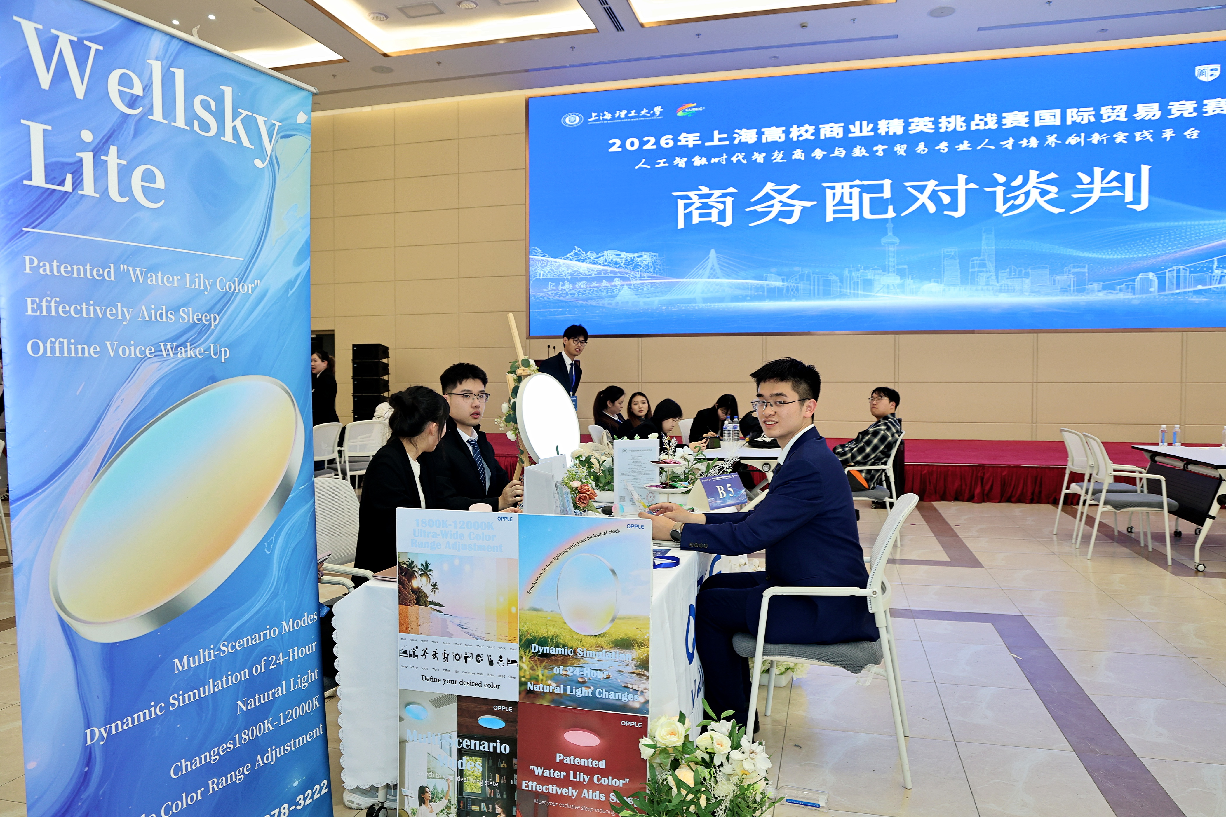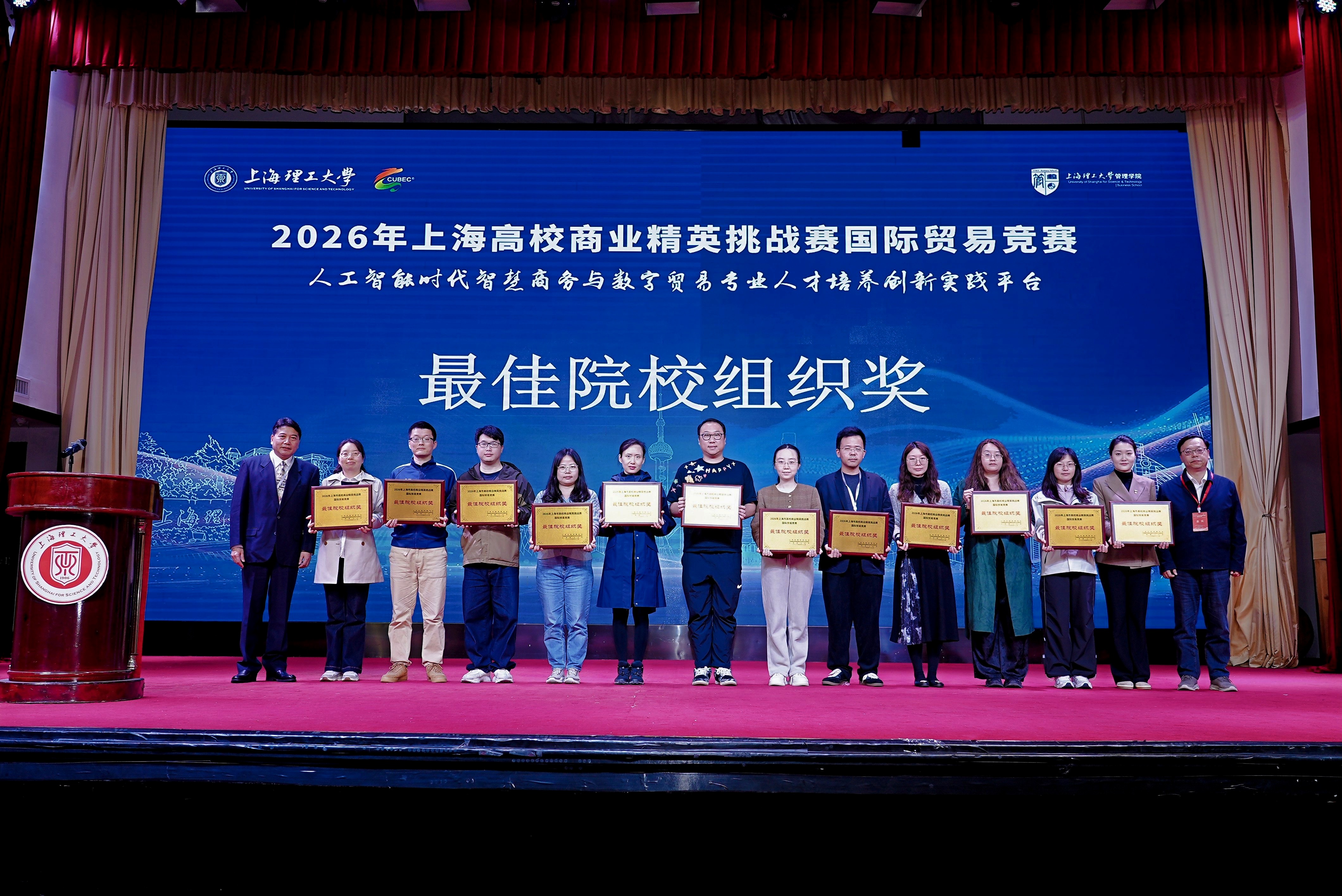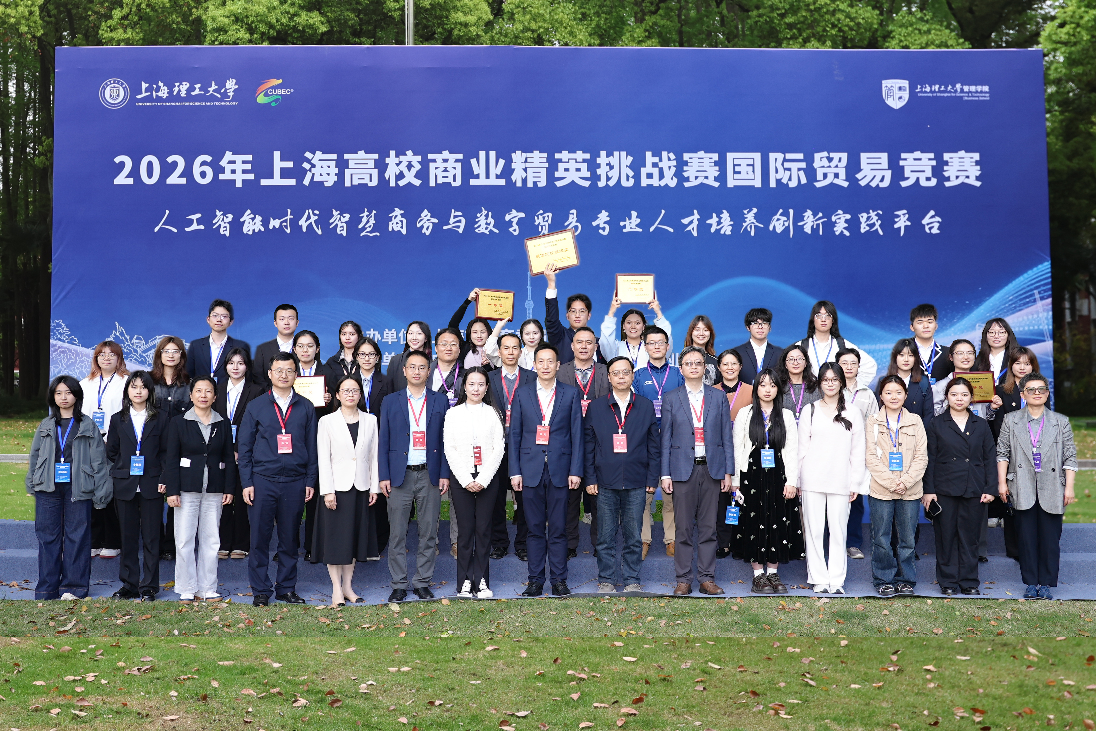 4月18日,2026年上海市高校商业精英挑战赛国际贸易竞赛在上海理工大学举办。本届赛事由上海市教育委员会主办,上海理工大学承办,中国国际贸易促进委员会商业行业委员会、中国服务贸易协会专家委员会和上海炫德国际贸易有限公司协办。赛事以“人工智能时代智慧商务与数字贸易专业人才培养创新实践平台”为主题,吸引了来自上海财经大学、上海大学、上海第二工业大学、上海对外经贸大学、上海海洋大学、上海师范大学等15所高校的48支队伍,约500名师生共同竞技。