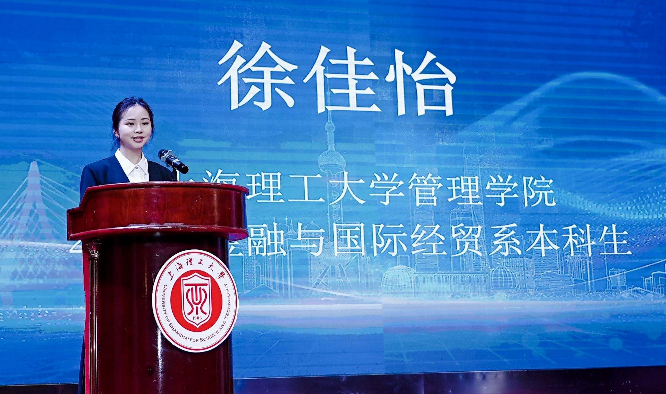 上海师范大学商学院学生学业拓展中心主任郝亮和上海理工大学管理学院金融与国际经贸系本科生徐佳怡分别代表参赛评委和参赛学生进行比赛宣誓。